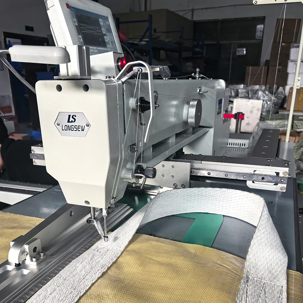 LS300-6050 Working area: 600x500mm, belt to FIBC’s body length 500mm, 600mm X direction can sew one belt’s two side by one time.