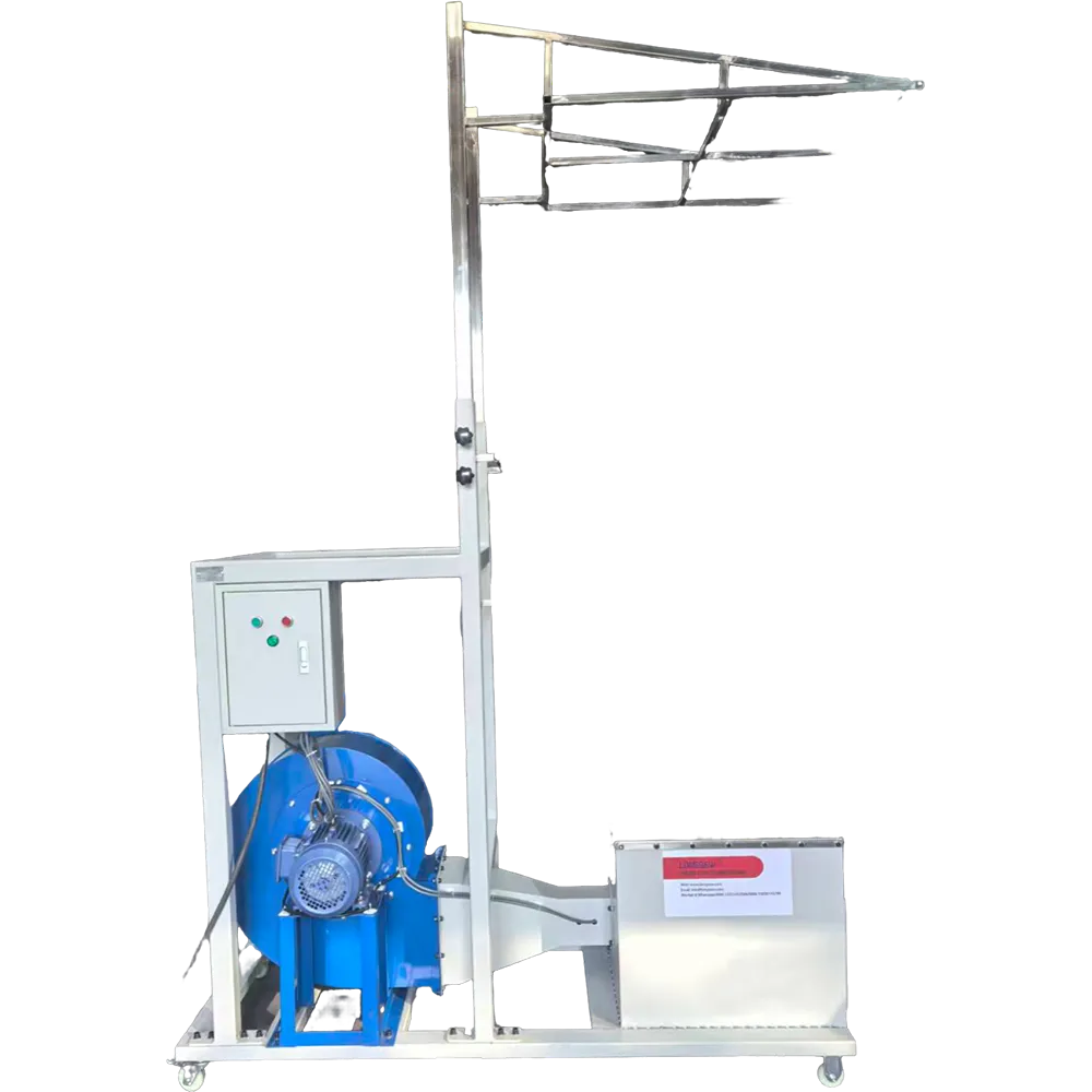 The equipment produced by ion fan stable air flow, make the fiber bag fully inflated, effective separation, and the vibration of using air and remove bag of residual impurities. Meanwhile, the equipment is equipped with an advanced static electricity elimination device, which can neutralize the static electricity inside the bag and prevent impurities from reattaching due to static adsorption. The removed impurities are carried by the airflow into the bottom dust collection cabinet and are eventually discharged uniformly through a dedicated sewage outlet.